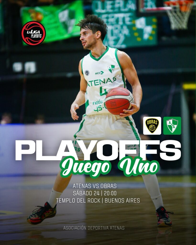 Atenas arranca los playoffs, al mejor de cinco partidos, visitando a Obras este sábado desde las 20. El segundo juego